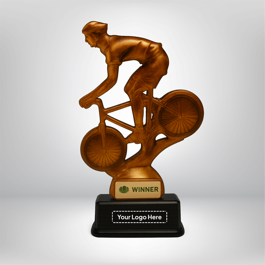 Premium metallic-finish cycling sculpture symbolizing strength, speed, and victory