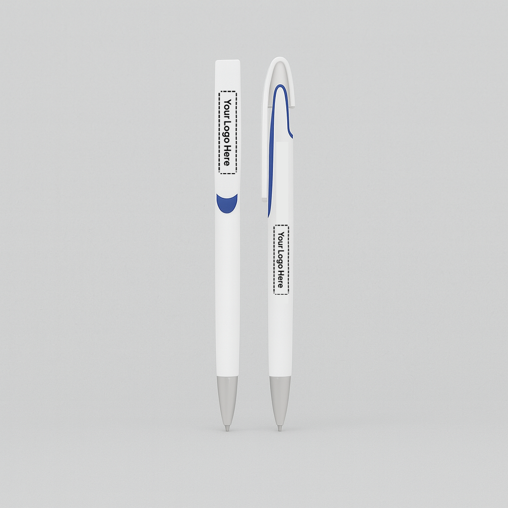 Clean white barrel with subtle blue detailing